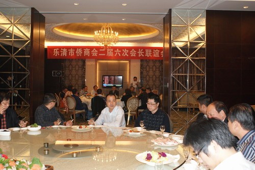 中新网12月2日电 据乐清市侨商会消息,日前,浙江省乐清市侨商会二届六次会长联谊会在乐清天豪大酒店召开。名誉会长、乐清市人大副主任张亨根,高级顾问、市外侨办主任吴寿喜,高级顾问、市侨联主席吴喜进及市外侨办副主任周越女和侨商会会长联谊会成员共30人参加了会议。