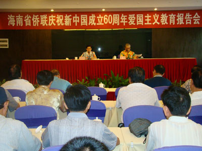 中新网9月9日电 9月2日,海南省侨联在海口市美华荷泰酒店举办“庆祝新中国成立60周年爱国主义教育报告会”,报告会由海南省侨联党组书记、主席何云霞主持,邀请海南省委党校(省行政学院、省社会主义学院)党委副书记、省行政学院院长、省委党校副校长廖逊主讲,省侨联、省侨联下属社团、海口地区侨联干部50多人参会。(海南侨联)