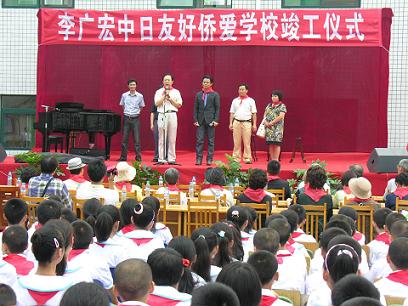 张继勇在致辞中说,李广宏先生情系四川、心系灾区。去年“5.12” 汶川特大地震发生后,李广宏率日本友人五次来川,多次为灾区学生举行演唱会,用歌声抚慰灾区学生受伤的心灵。后又拿出积蓄52.5万元人民币,在灾区捐建“李广宏中日友好侨爱学校综合楼”。今天,在各方面共同努力下,综合教学楼终于建成了,我代表省侨办对此表示热烈祝贺,对李广宏先生及日本友人的到来表示热烈欢迎和衷心感谢。他希望学校师生搞好教学,发奋勤学,为实现四川省“两个加快”努力工作,以优异成绩迎接建国60周年到来。