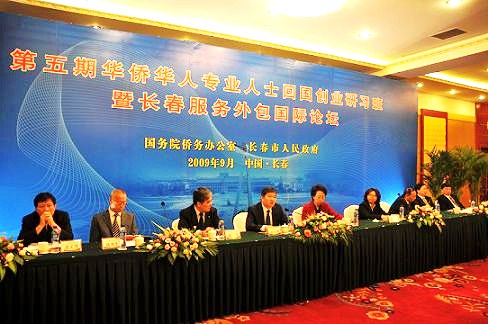 “华侨华人专业人士回国创业研习班”旨在通过创业辅导,增进华侨华人专业人士对国家经济发展形势和回国创业政策的了解,并进行项目对接洽谈,推动他们回国创业。“研习班” 至今已经举办四期,此次是第五期,以“创新创业、共谋发展”为主题,以“长春服务外包国际论坛”、“创业辅导”和技术合作项目对接等有效形式,为海外华侨华人人才来华创业提供政策辅导、咨询和服务。参加第五期研习班的学员来自美国、加拿大、英国、法国、澳大利亚、日本、香港、台湾等14个国家和地区,大都在海外学有所成,掌握先进的科学技术和管理经验。他们在参加研习班的政策辅导之后,还参加了长春国际服务外包论坛,参观了长春经济技术开发区和长春高新技术产业园区。