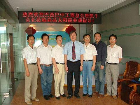 中新网9月16日电 9月9日,巴西巴中工商总会会长唐凯千先生来到无锡,在无锡市侨办、惠山区侨办工作人员的陪同下,考察了无锡尚品太阳能电力科技有限公司、江苏玉龙钢管股份有限公司,并与公司领导就贸易与合作等事宜进行了洽谈。
