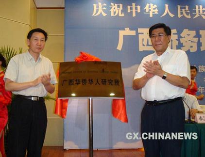 广西侨务理论研究的重要基地——广西华侨华人研究所9月24日在南宁挂牌成立,广西壮族自治区政协副主席梁春禄、国务院侨办政策法规司副司长范如松为研究所揭牌,广西壮族自治区侨办主任李汉金、广西社会科学院院长吕余生等出席活动。此为广西自治区侨办充分利用广西社科院东南亚研究所的资源和力量,发展广西的侨务理论尤其是对华侨华人研究工作的重要举措。