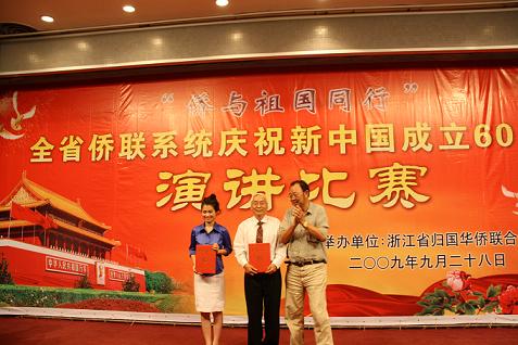 为庆祝新中国成立六十周年,浙江省侨联于9月28日下午,在浙江图书馆二楼报告厅举办了以“侨与祖国同行”为主题的全省侨联系统演讲比赛活动,由各市侨联推荐的、来自全省侨界各行各业的19名参赛选手参加了比赛活动。