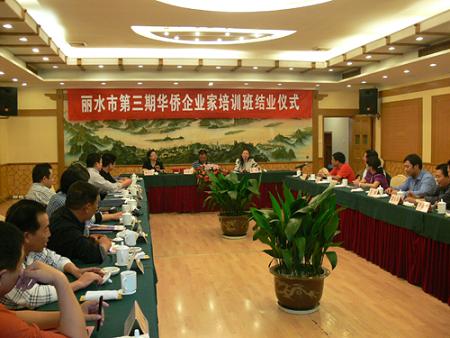 结业仪式上还举行了华侨企业家座谈会,大家畅谈了几天来的学习体会,并对侨办、侨联举办下期培训班提了许多宝贵的意见和建议。(丽水市侨联 王伟丽)