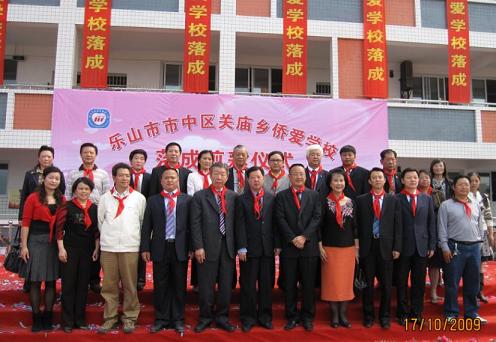 以戴宏达先生为团长的菲华各界联合会代表团一行12人出席了落成剪彩仪式。乐山市中区政府、教育局、乐山市外侨办有关领导等参加了仪式。仪式上,关庙乡侨爱学校校长和学生代表作了发言,对菲华各界联合会各位侨胞的爱心表示衷心感谢,学生们还表演了自编的节目。菲华各界联合会当场又捐赠5万元人民币用于改善学校的硬件设施。
