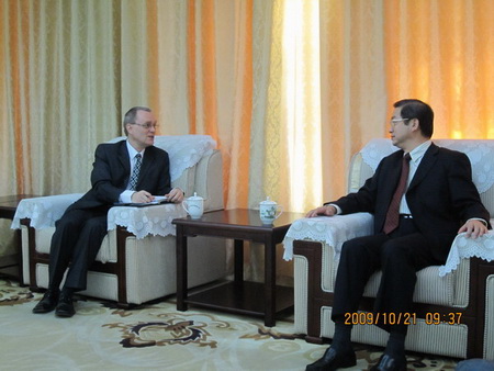 中新网10月22日电 10月21日上午,上海市侨办主任崔明华在市侨办贵宾室会见匈牙利驻沪总领馆副总领事米哈依。