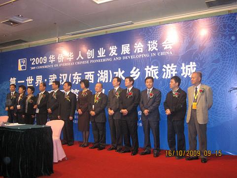 16日上午,在武汉国际会展中心举办了隆重的开幕式,开幕式后,在国际会展中心月湖厅举行了由浙江正达集团和武汉市东西湖区政府合作的第一世界•武汉(东西湖)水乡旅游城项目签约仪式,浙江省侨办副主任余长年出席了签约仪式。该项目计划投资80亿元,分四期实施,建设周期约8年,是武汉市目前最大的旅游项目。浙江正达集团董事长、浙江省侨商会常务副会长陈侠介绍,水乡旅游城的建设旨在充分利用无与伦比的水资源优势和城市定位,立体地展示中原区域“水”文化的历史原型,将3500年荆楚历史文化与现代文明、旅游文化、生活方式完美结合,打造一座集旅游度假、休闲运动、文化娱乐、旅商会展、经典社区于一体的独具水乡特色的现代休闲旅游区。