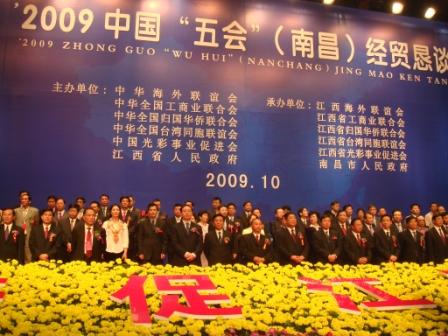 中新网11月4日电 据中国侨联网站消息,10月28日上午,由中华海外联谊会、中华全国工商业联合会、中华全国归国华侨联合会、中华全国台湾同胞联谊会、中国光彩事业促进会和江西省人民政府联合主办,以“‘五会’共架同胞心桥,八方同促江西崛起”为主题的2009中国“五会”(南昌)经贸恳谈会在南昌市红谷滩会议中心开幕。中央统战部副部长、全国工商联党组书记全哲洙,全国台联会长梁国扬,中国侨联副主席王永乐以及江西省有关领导出席开幕式。