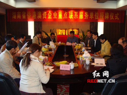 湖南省外事侨务办公室从今年起,在全省范围内开展“湖南省侨港澳资企业重点联系服务”工作,对在湘侨港澳资企业实行挂牌重点联系服务。11月4日上午,株洲金轮房地产开发有限公司和湖南炎帝酒业公司作为株洲市仅有的2家企业,获得授牌。
