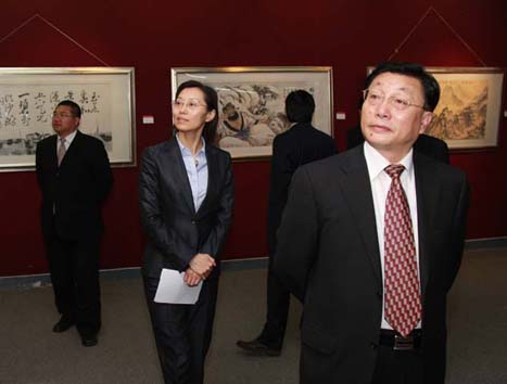 王琳在致辞中说,“祖国万岁——庆祝新中国成立60周年华人书画展暨山东侨资企业成就展”大型宣传展览活动,是山东侨界的一项盛事,也是向新中国60华诞和全运会成功举办的献礼。此次展览展示的丹青墨宝,主要是西班牙、荷兰、意大利、奥地利、法国、德国、美国、日本等国家华侨华人书画家和国内知名书画艺术家的代表作,具有很高的艺术造诣和感染力。
