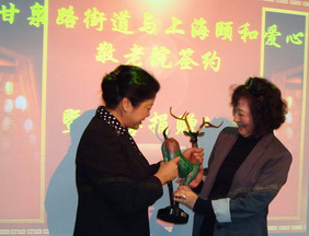 普陀区委常委、统战部部长夏斯德在仪式上高度赞扬杨詠曼充满爱心和人道主义精神的善举,并建议她将香港先进的养老经验引进到甘泉,将敬老院办出特色。
