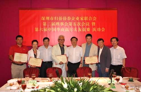 据了解,深圳市侨企联此前组织归侨侨眷企业家参加了由中国侨商投资企业协会主办的“第六届中国华商高尔夫友谊赛”,获得了团体总杆亚军、个人净杆冠军、个人总杆冠军的好成绩,为深圳的侨资企业争得了荣誉。此外,在台湾地区今年遭受“莫拉克”台风袭击期间,深圳市侨企联副会长罗仕励、周建华通过市侨企联向灾区积极捐助了两万元善款,表达深圳侨资企业的一片爱心。为此,中共中央台办和海协会还发来感谢信和捐赠证书。会上,钟荫腾向在第六届中国华商高尔夫友谊赛上获得荣誉的归侨侨眷企业家们颁发了荣誉证书,向罗仕励、周建华等转发了中共中央台办和海协会颁发了捐赠证书,并对市侨企联能在短短几年的时间内,发展得非常有活力、有影响力、有号召力,且在各个层面工作的拓展取得了好的业绩表示了祝贺。