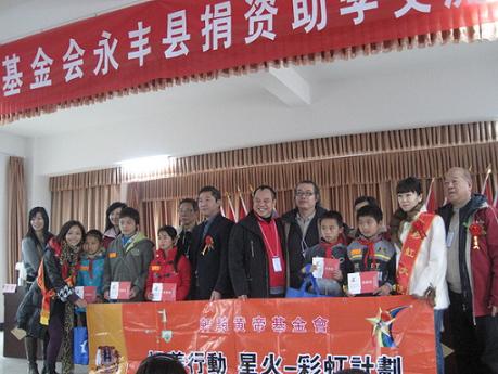 香港龙山基金会属于非营利性慈善组织,由江西省港澳区政协委员邓国容先生会同有识之士创建,多年来该基金会一直关注永丰县教育事业、关注永丰县贫困学生。星火——彩虹计划是由龙山基金会和轩辕黄帝基金会联手创办的助学扶贫计划,主要是扶持江西省革命老区、少数民族地区及贫困山区的文教事业。自2004年起,星火——彩虹计划已经组织了多次“赣港心连心”江西访问交流团来该县开展捐资助学活动。累计已援建龙冈畲族乡中心小学教学楼、瑶田镇三湾小学轩辕黄帝教学楼、八江乡高家小学轩辕黄帝教学楼、潭头乡杨梅江小学白求恩教学楼,资助金额42万元;资助全县21个乡镇贫困学生400人次,资助金额12万元;捐助教学用品及学生学习、生活用品折合人民币达5万多元。