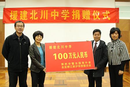 截止目前,浙江省侨胞已为援建北川中学捐资近千万。