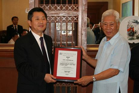 中新网11月25日电 据山东省侨办消息, 11月23日,山东省侨务访问团拜访了中国驻菲律宾宿务领事馆,与总领事何时敬举行了座谈,并向领事馆赠送了纪念品。随后访问团前去拜会了宿务菲华商会,该会理事长林伦超及各位理事热情接待了访问团一行。
