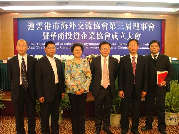 国务院侨办副主任、中国海外交流协会副会长马儒沛,国侨办国内司司长杜志滨,江苏省侨办主任、江苏省海外交流协会会长韩健民、省侨办副主任孙彬,连云港市领导王建华、徐一平、魏国强、谢建民、李广成以及近百名侨商、侨领理事等参加了会议。