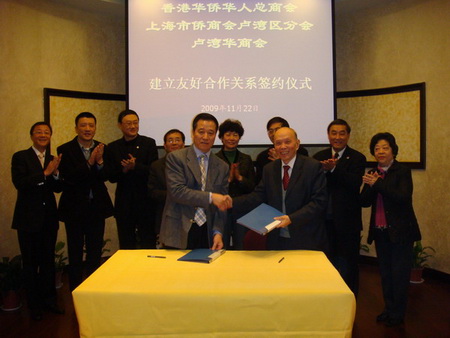 经过双方友好磋商,为了进一步密切卢湾与香港地区商会组织间的联系,增进友谊、共谋发展,上海市侨商会卢湾区分会、卢湾华商会与香港华侨华人总商会决定就双方友好、合作关系事宜签订意向书。