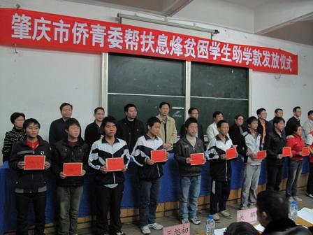 中新网11月27日电 据贵阳市侨联消息,11月24日,在贵州省、贵阳市侨联的牵引下,肇庆市侨青委港澳青年企业家们给息烽一中杨大英、刘启丽等50名高中贫困生每人带来了500元助学款,这对于他们的学习和生活来说无疑是“雪中送炭”。