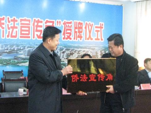 会议对全市侨法宣传工作进行了部署,并向市中区荣华里社区和光明园社区进行了“全国侨务系统五五普法侨法宣传角”授牌。