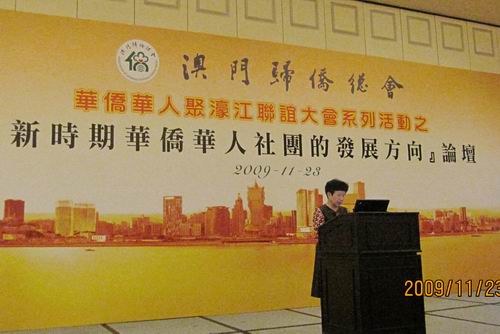 中新网12月2日电 据江苏省侨联消息,11月23日至24日,以江苏省侨联主席郁美兰为团长的江苏省侨联代表团一行3人出席了在澳门举行的“2009华侨华人聚濠江联谊大会”。