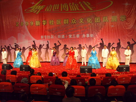 中新网12月2日电 据上海市侨办消息,11月25日,为宣传世博、了解世博、走进世博,进一步营造社区迎世博的热烈氛围,进一步构建健康、和谐的城区环境和城区活力,上海市长宁区新华社区在上海影城隆重举办了“舞动世博旋律”——2009新华社区群众团队展示活动。