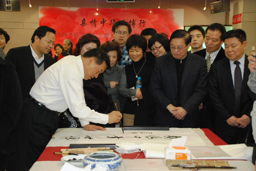 19日下午,中国侨联主席林军、副主席乔卫、吴幼英及上海市统战部领导、市侨联领导出席了由上海市侨联、上海市华侨基金会举办的迎世博书画公益展。