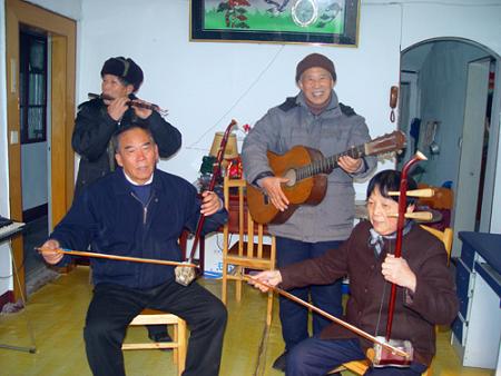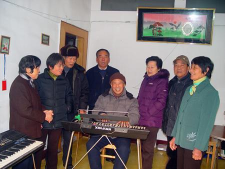 中新网12月25日电 据浙江侨联网消息,近日,浙江省余姚市丈亭镇80多岁的侨眷王关心在家举行了迎新音乐会。二胡、电子琴等各种乐器的演奏声吸引了许多村民和一些退休教师前来聆听并参与其中,其乐融融的乐曲声中,体现了新农村文化生活的不断丰富。