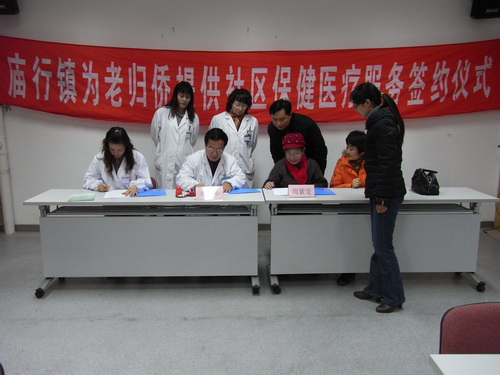 中新网12月25日电 据上海市侨办消息,日前,上海市宝山区庙行镇社区卫生服务中心与早期归侨周紫雯共同签订了《提供社区保健医疗服务协议书》。