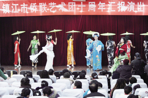 中新网12月30日电 据镇江市侨联消息,12月27日,江苏省镇江市侨联艺术团举办庆祝成立十周年汇报演出。来自镇江市辖区的归侨侨眷、留学生亲属近百人参加了活动。