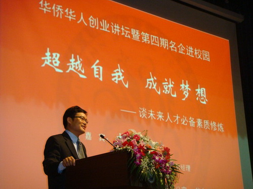 中新网12月30日电 据上海市侨办消息,近日,由上海市侨办与华东理工大学共同主办的“华侨华人创业讲坛”第三讲在华东理工大学逸夫楼举行。本次讲坛特邀英特尔公司中国执行董事、总经理戈峻博士作主题为《超越自我,成就梦想――谈未来人才必备素质修炼》的精彩报告,并与华东理工大学师生互动交流。
