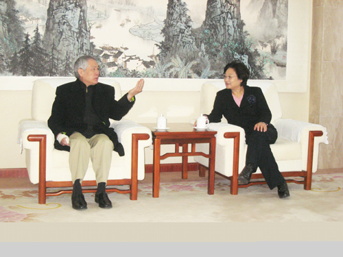 池洪湖愉快地回忆起2009年春节期间李海峰率“文化中国 四海同春”艺术团到旧金山访问演出的情景,并就2010年春节期间国侨办“文化中国 四海同春”艺术团赴旧金山访演与许又声交换了意见。