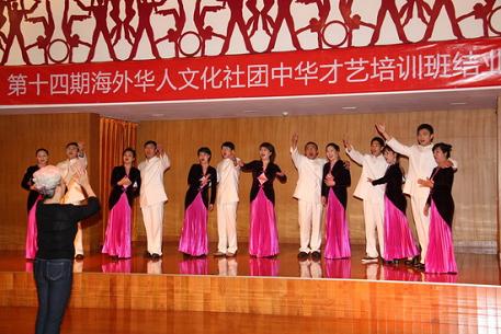 据介绍,深圳华夏艺术中心自2002年12月3日承办第一期“中华才艺培训班”至今,已先后承办了十期,60多个国家的600余学员在此接受过培训。为使学员们能将专业知识较为完整的带回去巩固和传播,华夏艺术中心此次还专门编写了舞蹈、声乐教材。“海外华人文化社团中华才艺培训班”的举办不仅为海外华社培训了一批高质量的才艺骨干,更丰富了当地华侨华人的文化生活,并成为中国开展海外文化交流活动的重要内容之一。在当天举行的结业典礼上,学员们还展示了一系列他们所学的传统中华民族舞蹈和声乐表演,汇报18天来的学习成果。(张平和)