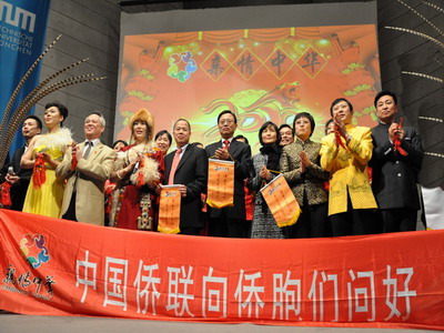 中新网1月6日电 据中国外交部网站消息,2010年1月3日晚,中国侨联组织的“亲情中华”艺术团欧洲之行首场演出在德国慕尼黑举行。慕尼黑总领事马晋生和夫人刘霞、领馆馆员及慕尼黑工业大学副校长孟丽秋、巴州华商会、侨学界、中资机构和一些德国友人约800人观看演出。
