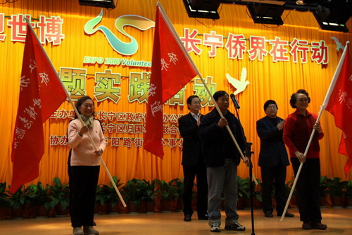 中新网1月8日电 据上海市侨办消息,新年伊始,上海市长宁区近300名侨界志愿者以饱满热情聚集在华阳社区文化中心,参加由长宁区侨办、侨联主办,华阳街道办事处协办的“满情激情迎世博,侨界人士在行动”长宁区侨界志愿者主题实践活动暨授旗仪式活动。