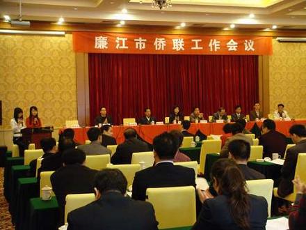 中新网1月12日电 据广东侨联网消息,近日,广东省廉江市侨联召开工作会议。湛江市侨联主席梁春明、副主席戴文威,廉江市政协主席郑炎章、廉江市委常委、组织部长杨康强等领导和廉江市侨联委员、归侨侨眷代表及被聘为荣誉职务的人员共100多人参加了会议。