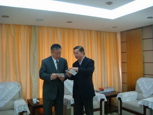 老朋友相见,格外高兴。胡思源向崔明华介绍了纽约州立大学在08年8月支助150名大学生赴美学习的情况,以及此次带领纽约州立大学校长老师和200位美国学生赴四川地震灾区进行学习交流等情况。