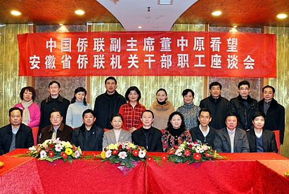 中新网1月13日电 据中国侨联网站消息,1月11日至12日,中国侨联副主席董中原赴安徽走访慰问老归侨和困难归侨侨眷。在此期间,董中原与安徽省侨联机关干部暨部分市级侨联主席进行了座谈,并赴滁州市琅琊区看望了中国侨联的挂职干部。