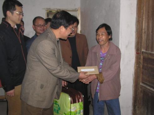 住在红卫居委会一组的越南难侨黄文屯,全家3口人,由于其本人有眼疾病,加之妻子双目失明,还要抚养一岁小孩,家庭生活十分困难,当他接过慰问金时,流下感激热泪,拉着董华民的手说:“感谢侨务部门的关怀!”,他还说到,去年在各级政府和社会各界的大力帮助下,通过危房改造,由原居住危房搬迁到现80平米的新房,居住条件大大得到了改善,我们深深感到党和政府对归难侨的照顾和关爱。在分别走访慰问红卫居委会二组、五组越南难侨姚永寿和黄宝孤寡老人,当了解他们仅靠领取低保救剂金,生活非常艰难,董华民要求茶场领导要重点扶助这类老、弱、病、残特困归难侨,嘱咐当地侨务部门和居委会负责人要力所能及地做好扶助工作。 (黄荣森 吴功奖)