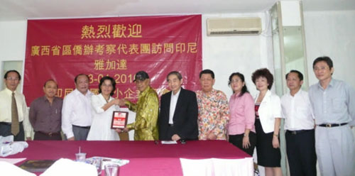 中新网1月26日电 据印度尼西亚《商报》报道,中国广西省壮族自治区侨务办公室代表团由林蓉蓉副主任率领下,一行3人,於1月23日中午11时,拜会了印尼-中国中小企业商会,并受到该会总主席章生耀,执行主席刘新华,辅导委员会副主席刘正昌,顾问潘佑元丶陈美云,财政章国俊,法律顾问Utama Kayo等的热忱接待。