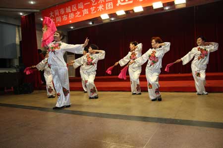 据艺术团团长周玉萍介绍,“侨之声”艺术团成立四年来,始终坚持以侨为本、为侨服务的工作理念。在大同市侨联的正确领导下,经常下基层以文艺的形式宣传《侨法》、慰问侨胞,仅2009年参加的全国和省市举办的文艺活动达6场,并获得有关部委的表彰。在新中国成立60周年之际掀起的大唱“红歌”活动中,艺术团为基层演出并现场辅导更是高达20多场。领导的支持、政治上的鼓励极大的带动了归侨侨眷的工作热情。
