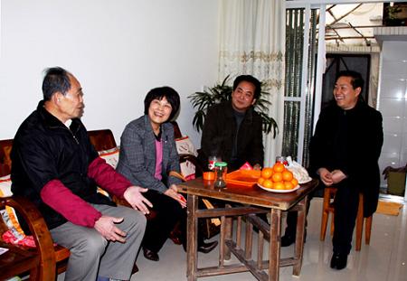 中新网1月27日电 据黄岩区侨联消息,新春来临之际,为带去党和政府对侨界群众的一份关爱,1月22日,浙江省侨联主席吴晶在台州市侨联主席吴世民,黄岩区政协副主席、区委统战部部杨小崇,区侨联主席陈征的陪同下,冒着严寒,带着浙江省侨联的深情和祝福,走访和慰问了黄岩区两户老归侨。