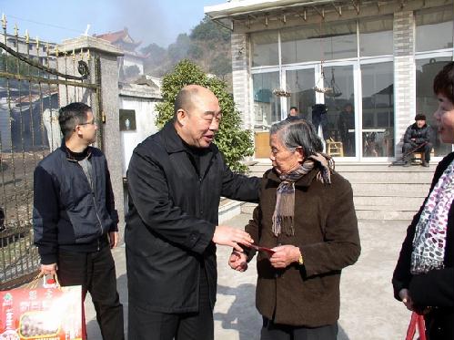 在温岭市敬老院,邱国栋拉着88岁高龄的刘桂英,嘘寒问暖,从家庭、子女和收入情况,到在敬老院的日常生活起居、费用等,一一详细问道。刘桂英激动地拿出自己获得的“报效桑梓奖”的荣誉证书,给邱国栋看。她表示,多年来党和政府在政治上、生活上关心自己,非常感谢。