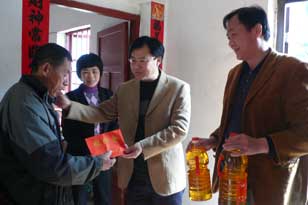 中新网2月4日电 据福建侨联网消息,春节临近,为体现福建省侨联对广大归侨侨眷的关心,让贫困的归侨侨眷过上一个祥和、温暖的春节,根据福建省侨联的统一安排, 1月29日至30日福建省侨联副主席兼秘书长林泽春,在莆田市侨联主席林树人等的陪同下,到莆田各区县和赤港华侨农场开展春节慰问活动,给困难归侨侨眷送去了侨联组织的关怀和温暖,捎去了新春的祝福。