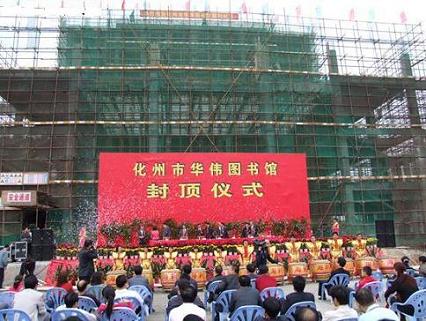 中新网2月9日电 据化州市外侨局消息,2月8日上午,广东省化州市委、市政府隆重举行侨捐项目华伟图书馆封顶仪式。该市四套班子领导成员和各区(街道)党委书记、市行政中心办公大楼正科级单位的主职领导和深圳市华讯伟业投资有限公司代表等100多人参加仪式。仪式由化州市委常委、宣传部部长周玉瑞主持。