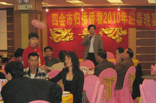 中新网2月10日电 据四会市侨联消息,2月4日,广东省四会市侨联在华侨大厦举办归侨侨眷2010年迎春晚宴。参加晚宴的领导和嘉宾有:四会市政协副主席黄家全;市府办、市人大侨工委、市政协三胞联络组、市委统战部和市外事侨务局的领导;市侨联荣誉主席、常委、委员、市侨青委委员、各镇(街道)主管侨联工作的领导和侨联主席、归侨侨眷代表共100多人。