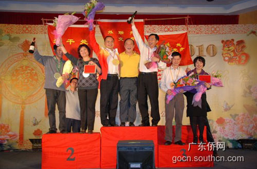 团拜会上还举行了广东省侨办交通与安全文明先进单位、交通安全先进工作者以及桌球比赛、乒乓球比赛前三名颁奖仪式。乒乓球的颁奖仪式效仿了奥运会的颁奖模式,参赛选手分别站在领奖台上,胸挂奖牌,手持鲜花,向大家致意,吴锐成向获奖选手颁奖,现场一片欢腾。干部职工决心在新的一年里振奋精神,开拓创新,全面提升侨务工作绩效,为侨务工作做出更大贡献。(肖锡权)