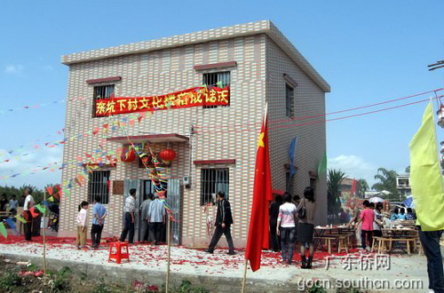 当天上午,新建的东坑下村文化楼前锣鼓喧天,醒狮起舞,来自东坑上、中、下三座村庄的干部群众欢聚一堂,举行澳门同胞邓树桥昆仲捐建的东坑下村文化楼落成剪彩庆典。这座由澳门同胞邓树桥昆仲捐资10多万元兴建的文化楼,楼高两层,建筑面积130多平方米,于去年12月竣工。东坑下村文化楼的建成,为当地群众提供良好的学习、娱乐和休闲场所,丰富了当地群众的文娱生活。