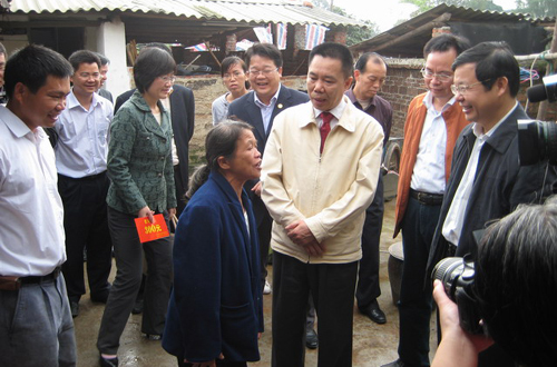 中新网2月23日电 据防城港市侨联消息,日前,广西防城港市东兴长山村长山组李玉娟的农家小院里洋溢着一片温馨祥和的气氛,热闹非常。由防城港市委书记禤沛钧带领的春节慰问第一分团一行,在该市有关领导和市侨联主席林威爵、市侨办主任覃菊花的陪同下,带着党和政府对归侨特困户的关怀和问候,对归侨李玉娟一家进行春节前的慰问。