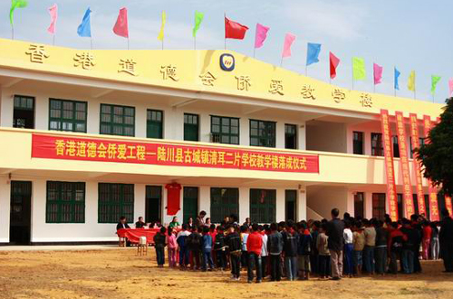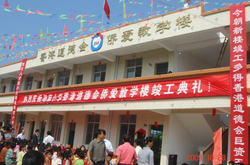 这4所“侨爱小学”项目于2009年5月份陆续开工建设,于2010年1月前全部竣工验收,并举行了气氛热烈的落成典礼。另外,香港道德会还给这4所小学的1432名学生和教师赠送新的衣物。师生们在即将到来的春季新学期将可以穿上新校服、新鞋子在宽敞明亮的新教学楼里上课学习。