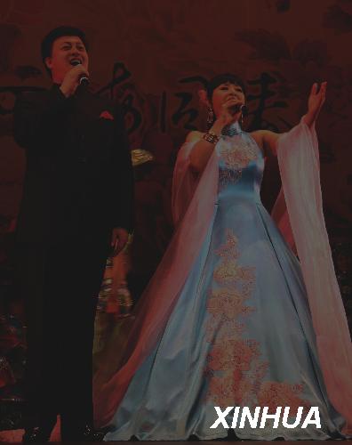 2月28日,著名歌唱家殷秀梅(右)、吕继宏在新西兰奥克兰举行的“文化中国·四海同春”慰侨文艺演出上联袂演唱。